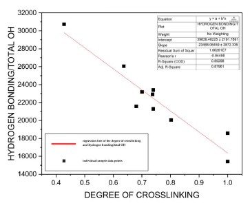 Figure 4 supports the paper’s interpretation that lignin hydrogen bonding / total OH content and crosslinking relationships connect to thermal behavior and contact-angle trends.