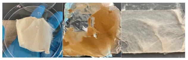 Figure 5 shows photographs of KL/PLA, ALE60/PLA, and SGL/PLA mats, the same classes of materials highlighted in the paper’s wettability and application discussion.